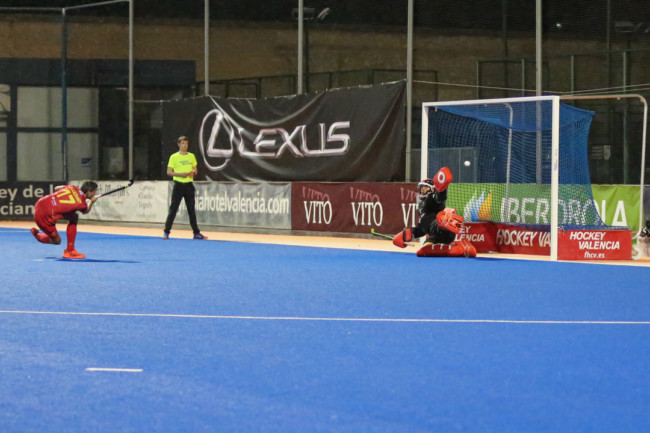 Quedaban quince minutos y el guión más repetido durante el encuentro no variaría. Un libreto que tenía escrito el gol de los #RedSticks. Fue de una bola frontal, cuando un movimiento genial de Quique González de Castejón, le dejaba libre para penetrar en el área. El delantero madrileño se asociaba con Álvaro Iglesias, que le devolvía la esférica. Con la posición clara de remate, un defensa cometía una infracción que terminaba en la señalización de un stroke. Una ocasión que Xavi Lleonart no desaprovechaba, para de esta forma, adelantar al equipo anfitrión (1-0, Minuto 48). Un tanto que despertó a los de Alexander Cox, que buscaron el empate en sendas aproximaciones. Una sólida defensa y un soberbio Quico Cortés, evitaron que así fuera.