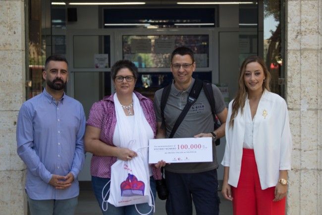El concejal de Cultura Festiva del Ayuntamiento de València, Pere Fuset, y la fallera mayor de València, Rocío Gil, han recibido esta mañana a las puertas del Museo Fallero al visitante número 100.000 de este año, un turista proveniente de la ciudad alemana de Mönchengladbach que se ha llevado un diploma simbólico y materiales promocionales de la fiesta de las Fallas proporcionados por el Museo Fallero y Junta Central Fallera.