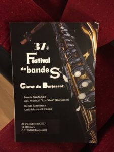 La música de banda volvió a inundar, en la pasada mañana dominical, el gran Salón de Actos del Centro Cultural Tívoli con la celebración de la XXXVII edición del Festival de Bandas “Ciutat de Burjassot”, organizado un año más por la Agrupación Musical Los Silos. En la edición de este 2017, la entidad invitada ha sido la Unió Musical de L’Eliana, cuya banda sinfónica, bajo la dirección de José Tomás March interpretó dos piezas: “Puenteareas”, de R. Soutullo y “El rugir del Kimbo”, de Ferrer Ferrran.